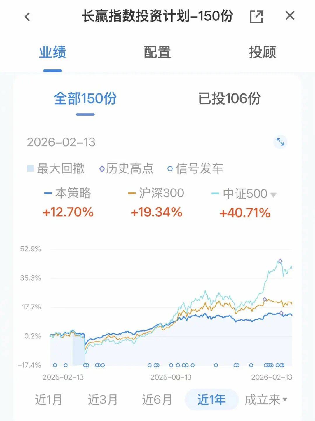 另一个产品长赢指数投资计划-S定投,全部206份、已投88份,近一年收益分别为4.85%、13.81%,整体表现均不佳。