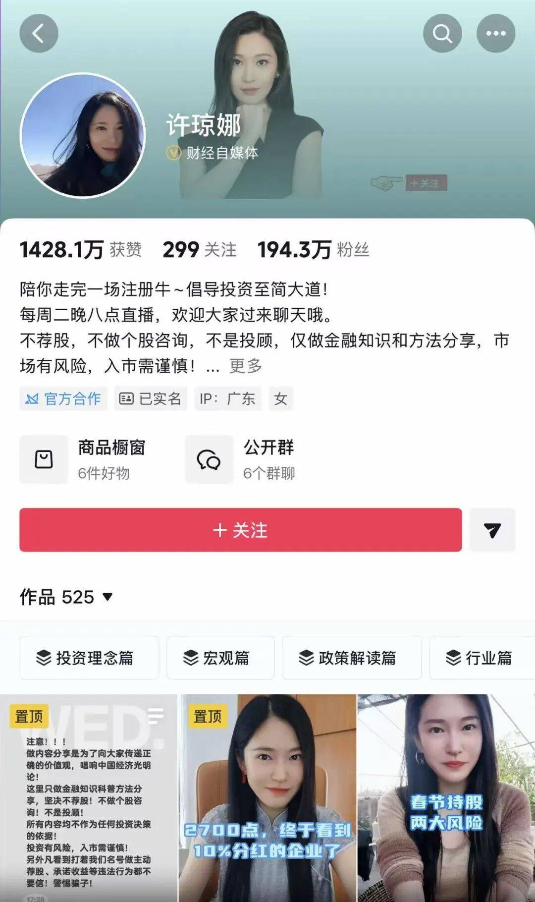 抖音大V、粉丝近300万的美女基金经理许琼娜,任把脉私募总经理,在短视频平台影响力巨大,靠颜值+专业吸粉无数。