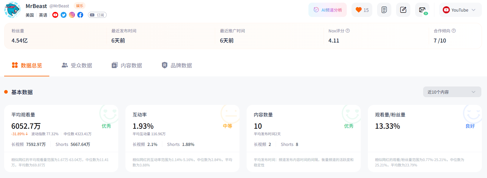 在垂直平台(如YouTube)的深度数据分析:对于将YouTube作为核心营销阵地的品牌,其提供的历史数据回溯和频道分析维度较为细致,能满足对单一平台深度钻研的需求。