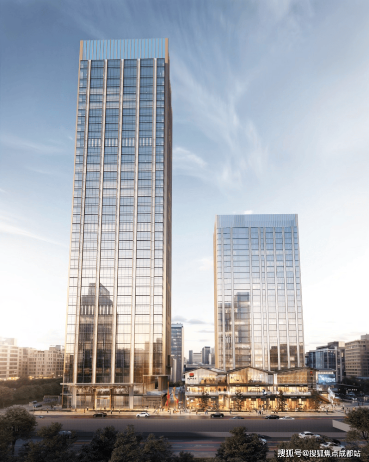总体规划由2栋建筑高度分别为175米和128米的双子塔楼以及9栋特色商业院落组成,两座双子塔的独特造型,也将成为成都主城新的门户地标。
