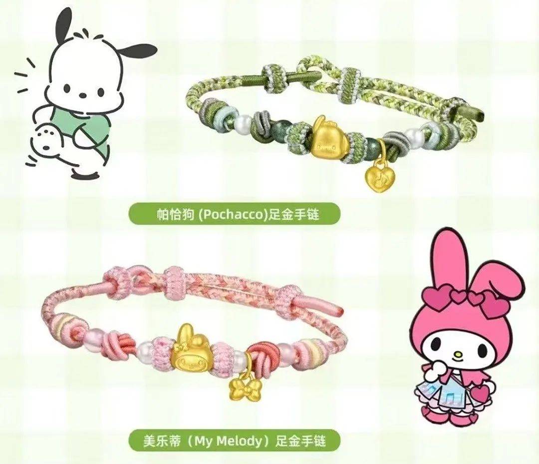 除了“痛金”大热,珠宝品牌与动漫IP联名的小饰品也大受欢迎。在金店里,我们总能看到它们的身影。