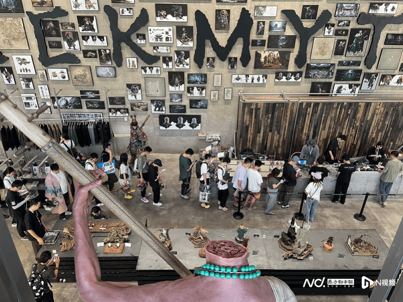 9月25日杭州最高温度达33度,但在黑神话BLACKMYTH线下零售店门前排队的玩家丝毫不惧高温。9月25日当天,黑神话BLACKMYTH线下零售店正式开始试营业,南都N视频记者现场看到,该零售店分为上下两层、面积约1000平方米,既有展品也有商品。目前展品覆盖了黑神话游戏中的大圣、牛魔王、黄眉、杨戬等关键角色;商品SKU已有120个左右,覆盖手办摆件、服装、玩偶、配饰、家居、包袋6个品类。另外除了周边产品以外,该零售店还开辟了一小块场所售卖咖啡和糕点。