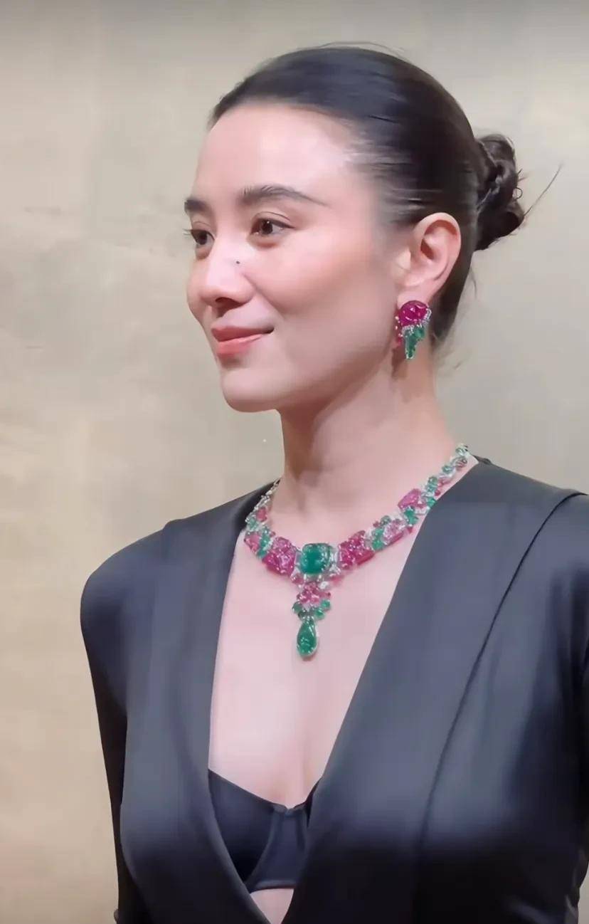 新生代实力派张婧仪今晚彻底颠覆了大众认知!黑色抹胸礼服宛如夜色中盛放的黑玫瑰,祖母绿珠宝在颈间熠熠生辉,高高挽起的发髻将优越的肩颈线条展露无遗。这姑娘不仅在演艺道路上一路高歌,时尚表现力更是突飞猛进,每个定格都散发着从容自信的光芒。
