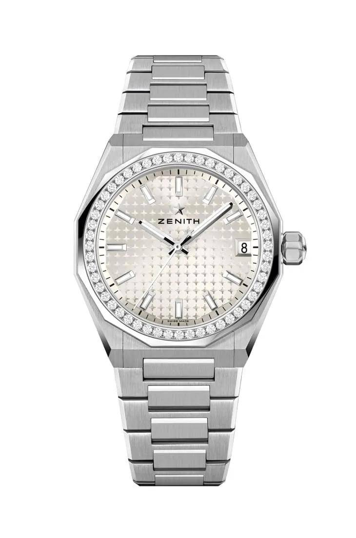 令人惊喜的是,DEFY SKYLINE巅峰系列天际腕表36毫米款首次采用了银色表盘,还配备了表带快拆系统,只需轻轻一按,精钢表链就能替换为饰有星形图案的黑色橡胶表带。这次的银色配色还推出了两款设计,一款更纯粹简约,另一款则更为华丽璀璨。