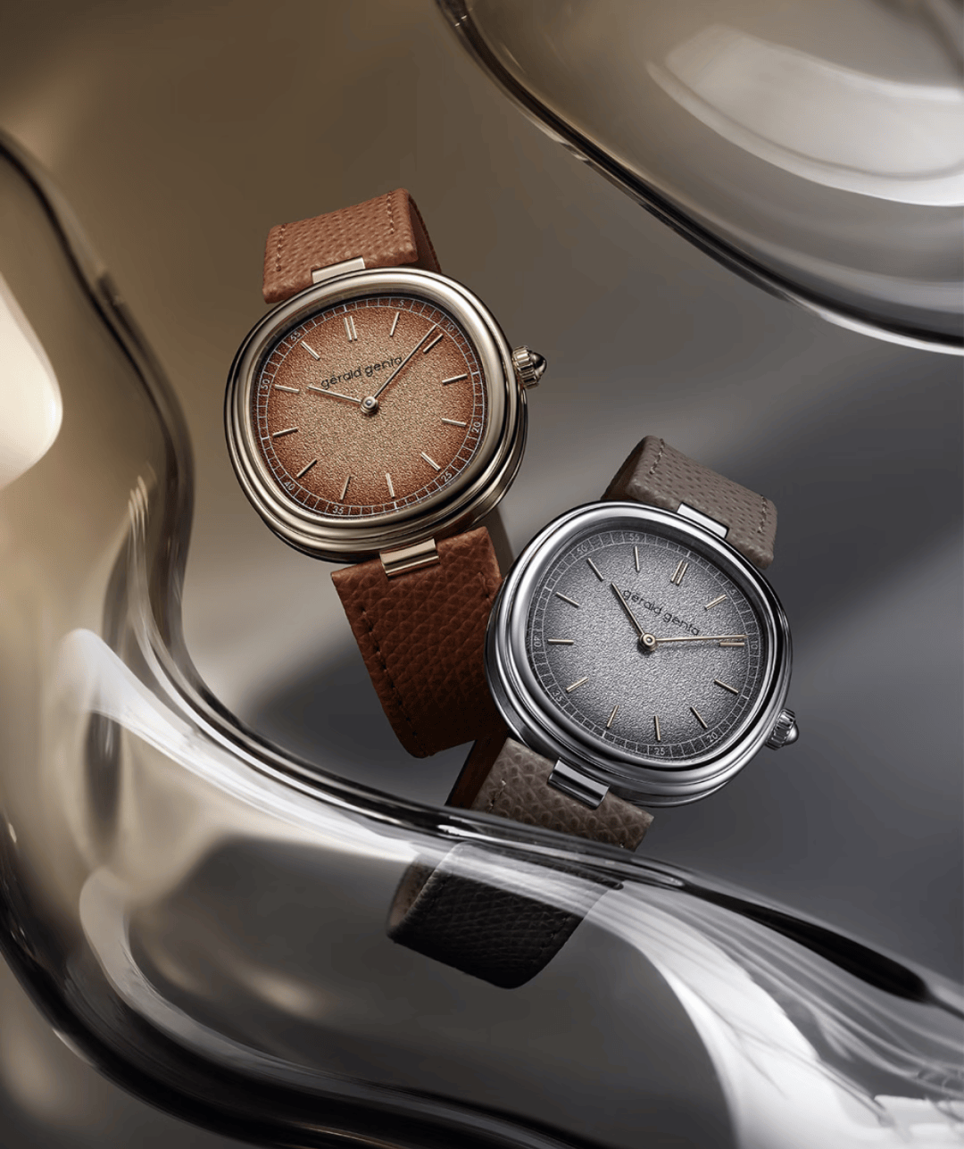 Gérald Genta 杰罗·尊达的全新Geneva系列腕表用38毫米的枕形表壳致敬了1970年代的经典设计,融入了标志性的钱币纹表圈,并提供了玫瑰金棕盘与白金灰盘两种配色,一款冷静,一款热烈。