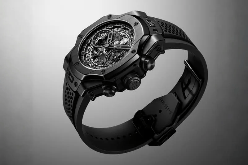 而这次发布的全新BIG BANG源型UNICO腕表,搭载了完全由宇舶自主研发和制造的Unico计时机芯,蓝宝石表背突显贵气,表盘的碳纤维纹理使其更加立体,表带融入了全新几何元素,配备了“一键式”快速更换表带系统,性能与外观兼备。
