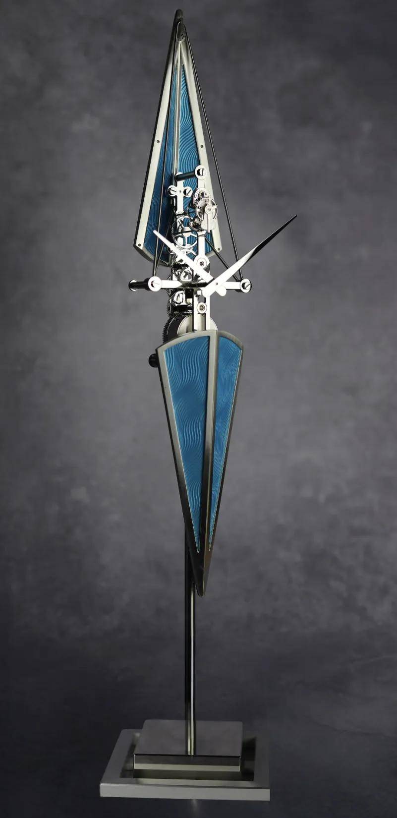 始终致力于传承和创新其独特的高端机械钟表工艺的高级制表品牌L’Epée 1839 ,这次以赛艇为灵感设计的垂直座钟 La Regatta Métiers dArt珐琅雕塑堪称一件艺术品,运用了十分罕见的大明火珐琅工艺创作而成,同样值得一看。