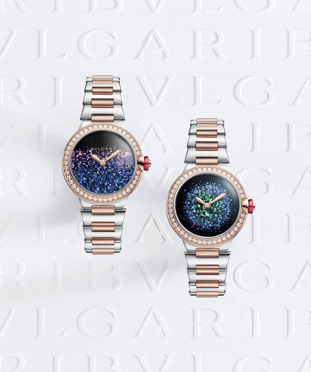 Lucea Notte di Luce 腕表则是宝格丽与日本漆艺大师 Yasuhiro Asai 合作而成,表盘使用了日本莳绘漆艺,营造出了光影效果,在漆面上镶嵌了细碎的母贝,整个设计十分梦幻。