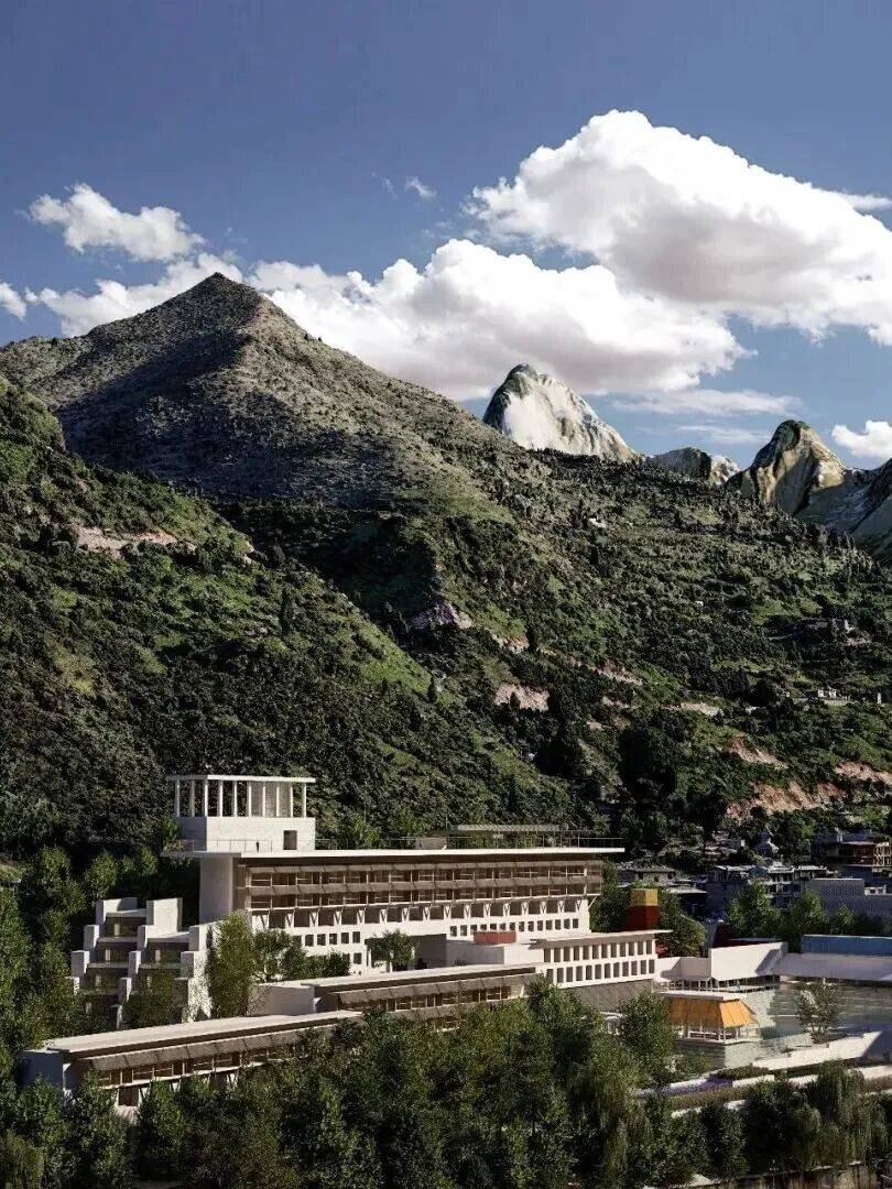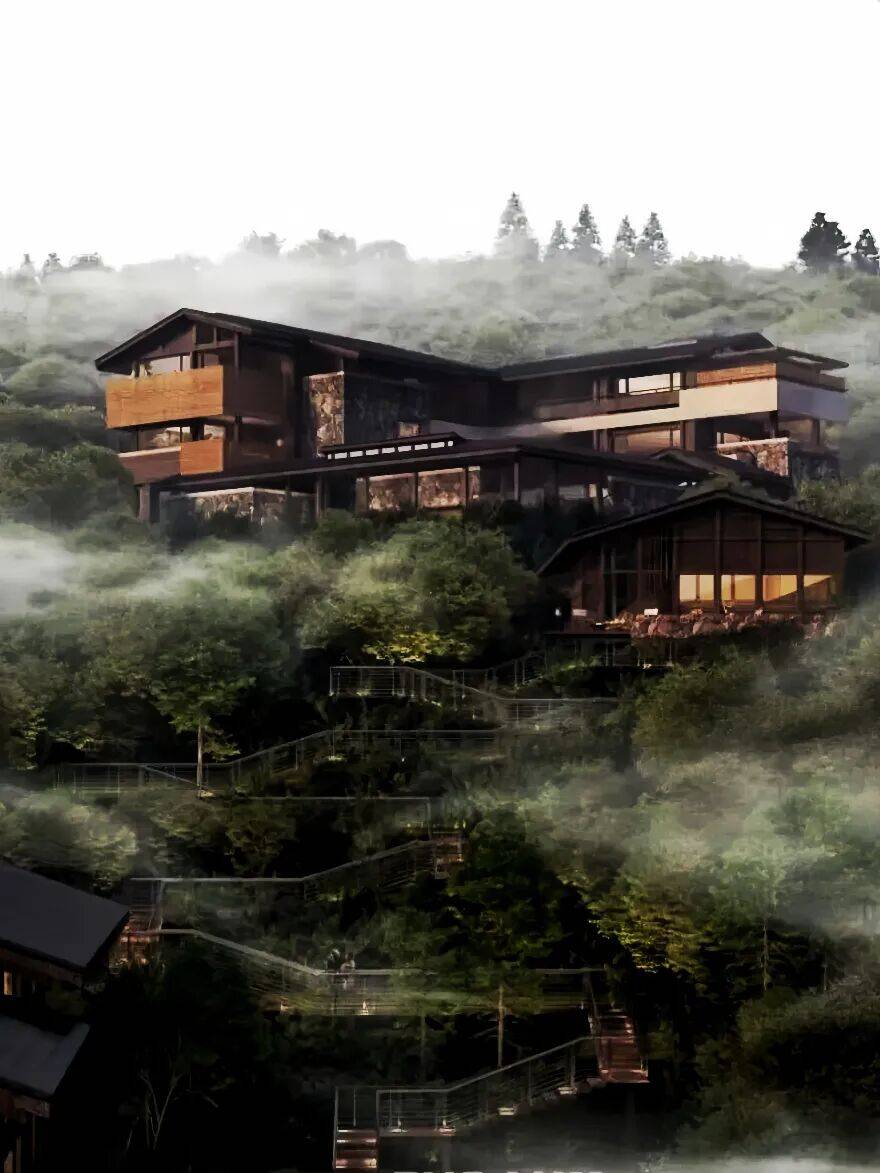 酒店由蜚声国际的知名中国建筑设计师董功操刀,以“山城聚落”为规划核心,建筑布局顺势而为,充分依托当地的山势、地势与水势,同时完整保留了场地原有植被及自然空间格局,打造与自然和谐共生的情境。