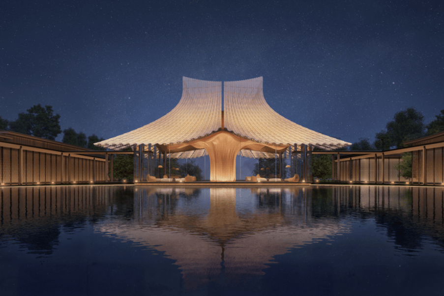 韶关南华寺丽世选址于韶关市曲江区的曹溪文化小镇内,紧邻禅宗祖庭南华禅寺。酒店定位为集禅宗文化传承、自然山水体验与奢华度假于一体的综合度假目的地。其建筑设计以六祖惠能“菩提本无树”的空性智慧为精神内核,融合盛唐建筑的雍容气度与现代极简美学的纯净韵律,旨在打造一处“明心见性”的禅意栖居之境。