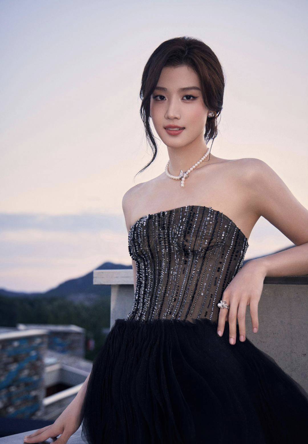 而当众人还沉浸在春日幻梦中时,卢昱晓又以另一套黑色抹胸短裙惊艳亮相,完成了一场令人屏息的风格转换。蓬松的短裙搭配背部交叉绑带设计,勾勒出如芭蕾舞者般优雅的肩胛线条,尖头高跟鞋拉长腿部比例,尽显利落与力量感。伟德国际珍珠配饰与暗黑裙装的碰撞,甜与酷的平衡拿捏得恰到好处。她在红毯上轻盈转身,裙摆翻飞如蝶翼舞动,被网友盛赞为“暗黑系精灵公主”,既神秘又灵动,令人过目难忘。
