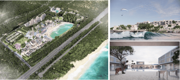 今年12月将要开业的的中旅逐浪度假区以“造浪者的精神故乡”为核心定位,聚焦年轻客群(18-39 岁中产阶级)的多元需求,打造“冲浪+度假+社交+文化”的一体化场景,既提供专业冲浪体验,汇聚 “有共同精神长相” 的年轻人,形成区别于传统滨海度假的独特价值主张。项目拥有奥林匹克级超级冲浪乐园SURFLAND冲浪乐园,全国首个冲浪主题度假酒店樾潮冲浪主题酒店和别具艺术设计感的空间美学酒店屿玥设计师酒店,以及时尚潮流的社交场逐浪越界商业街,用酒店度假、户外运动、休闲餐饮、微醺酒吧、 购物娱乐、文化艺术等丰富业态,为造浪者提供从“大浪-中浪-微浪”不同等级的情绪价值。