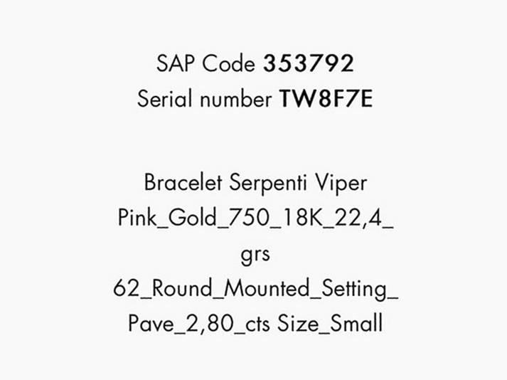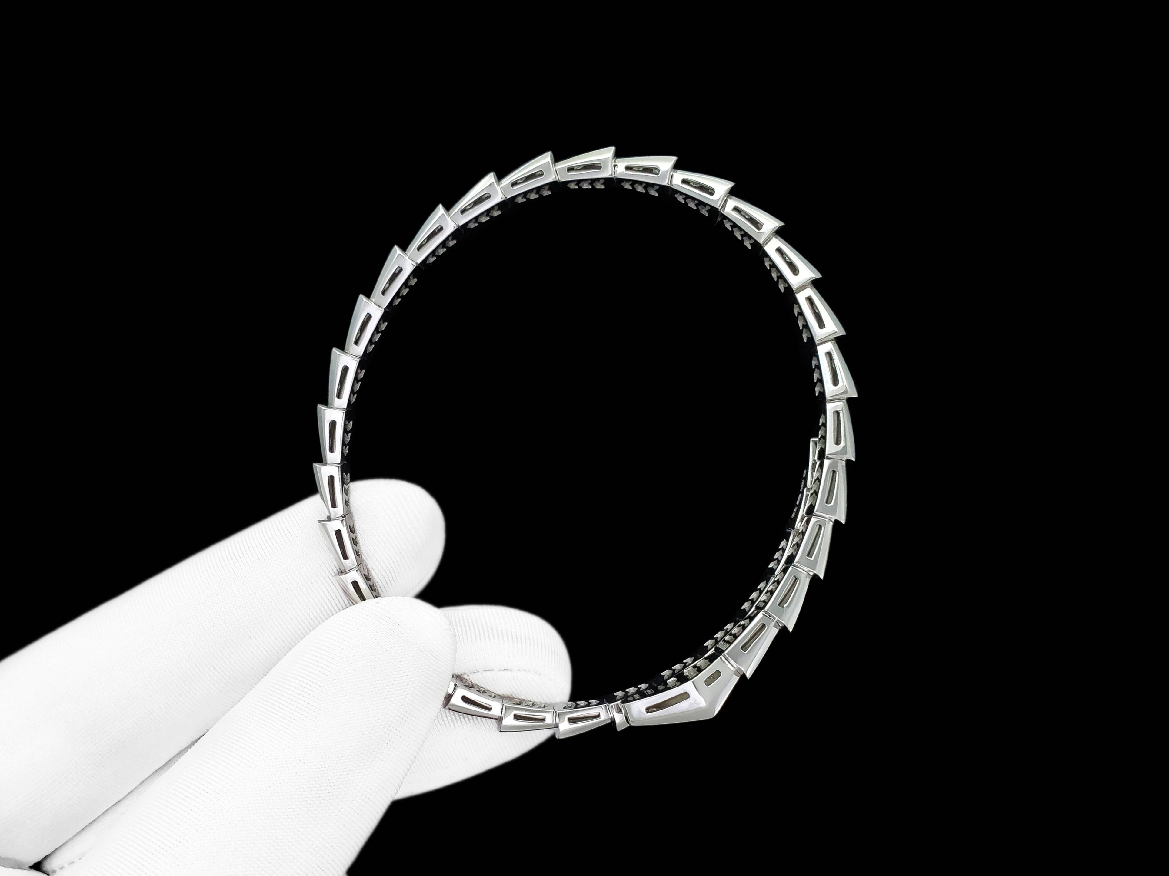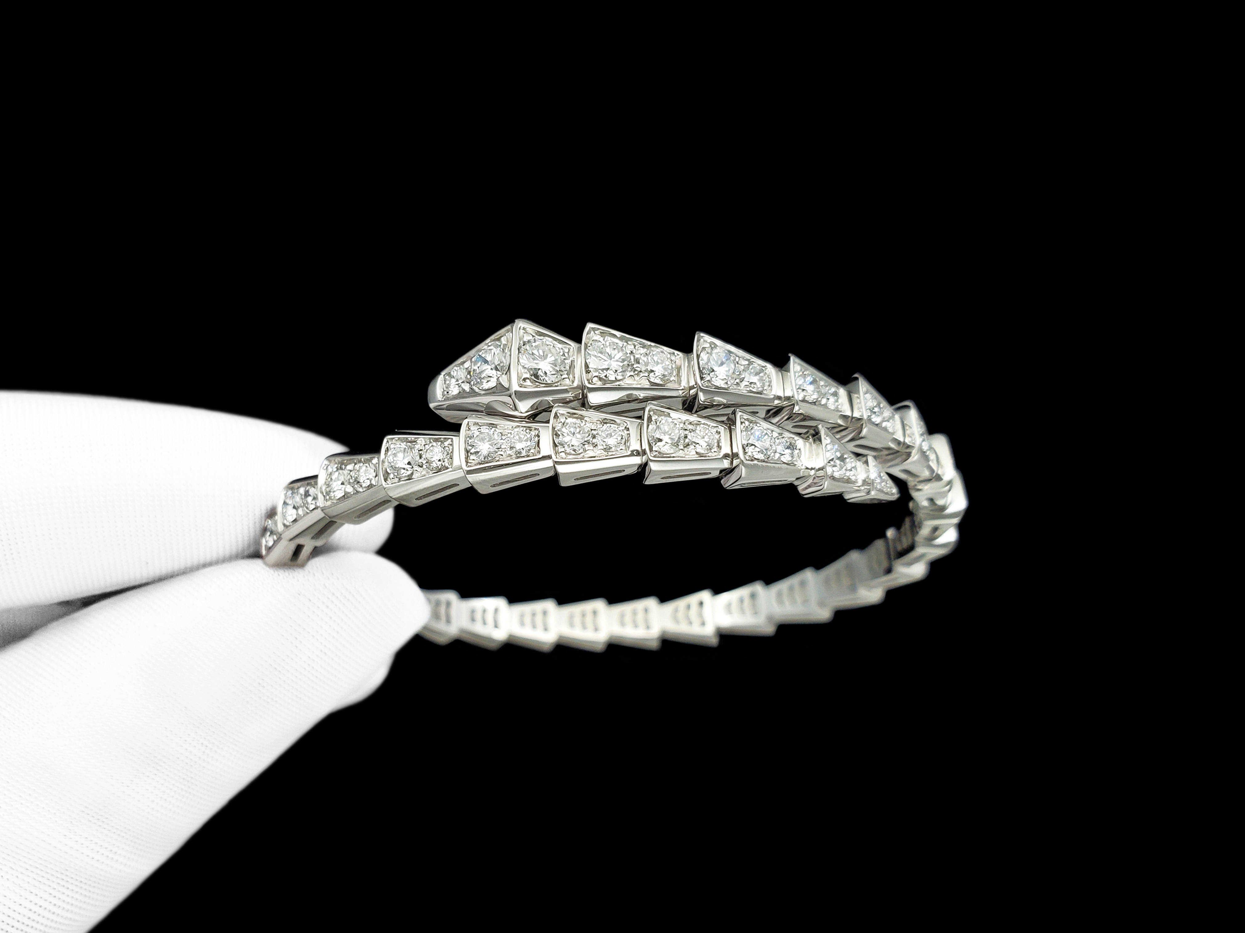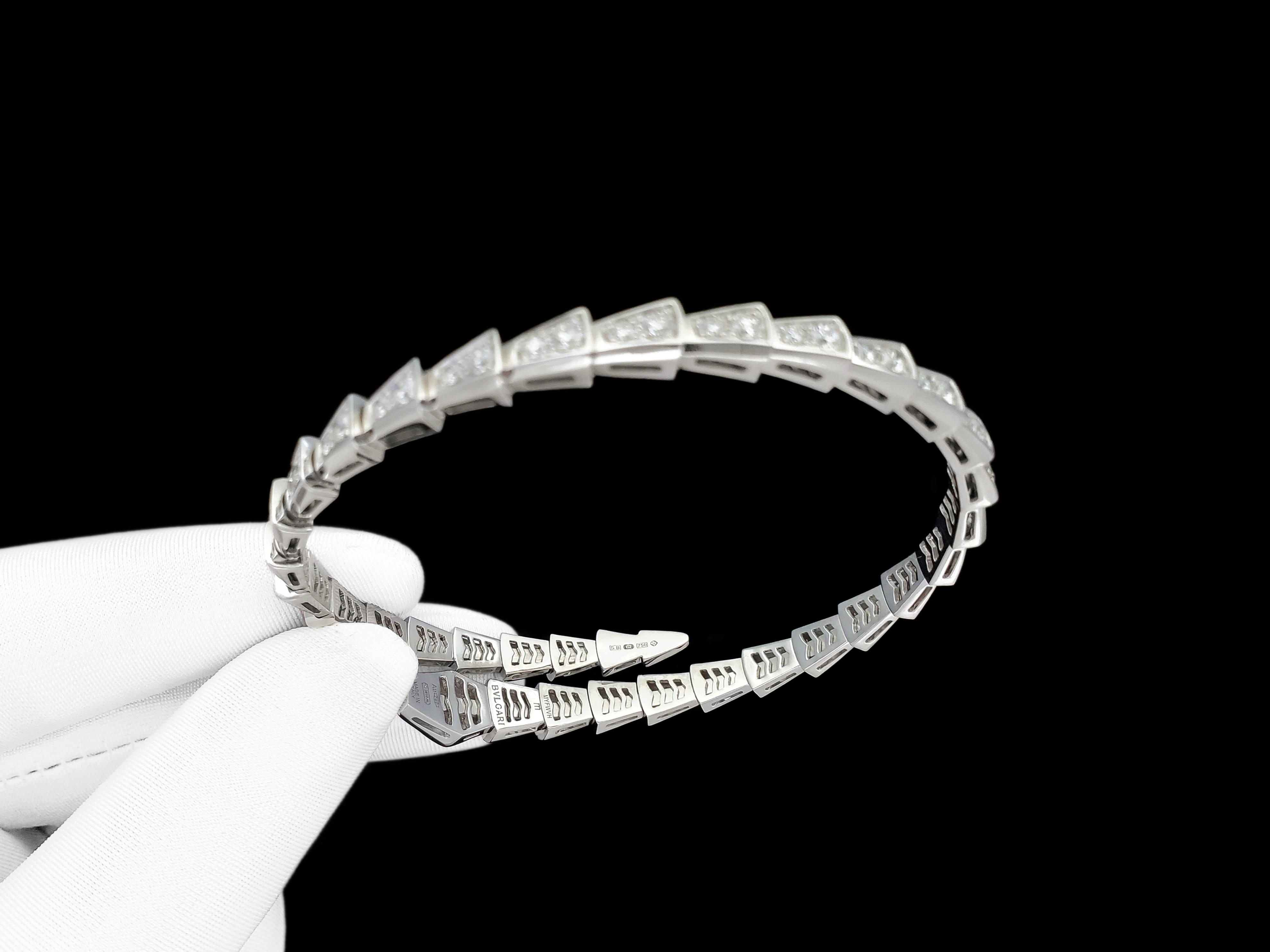 Bvlgari宝格丽Serpenti Viper系列18K白金满镶钻石蛇形弹簧手镯S码参数