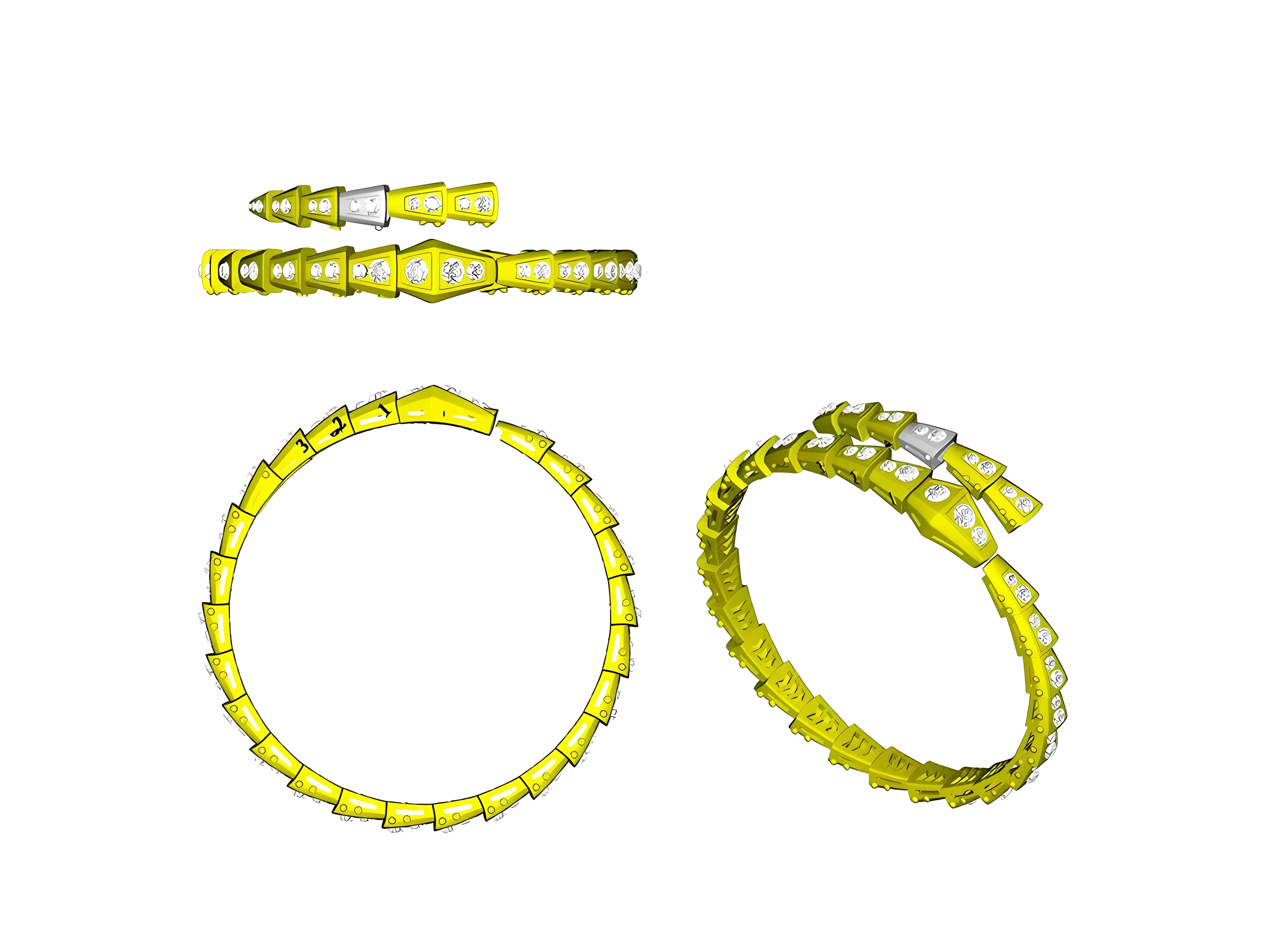 Bvlgari宝格丽Serpenti Viper系列18K白金满镶钻石蛇形弹簧手镯CAD图
