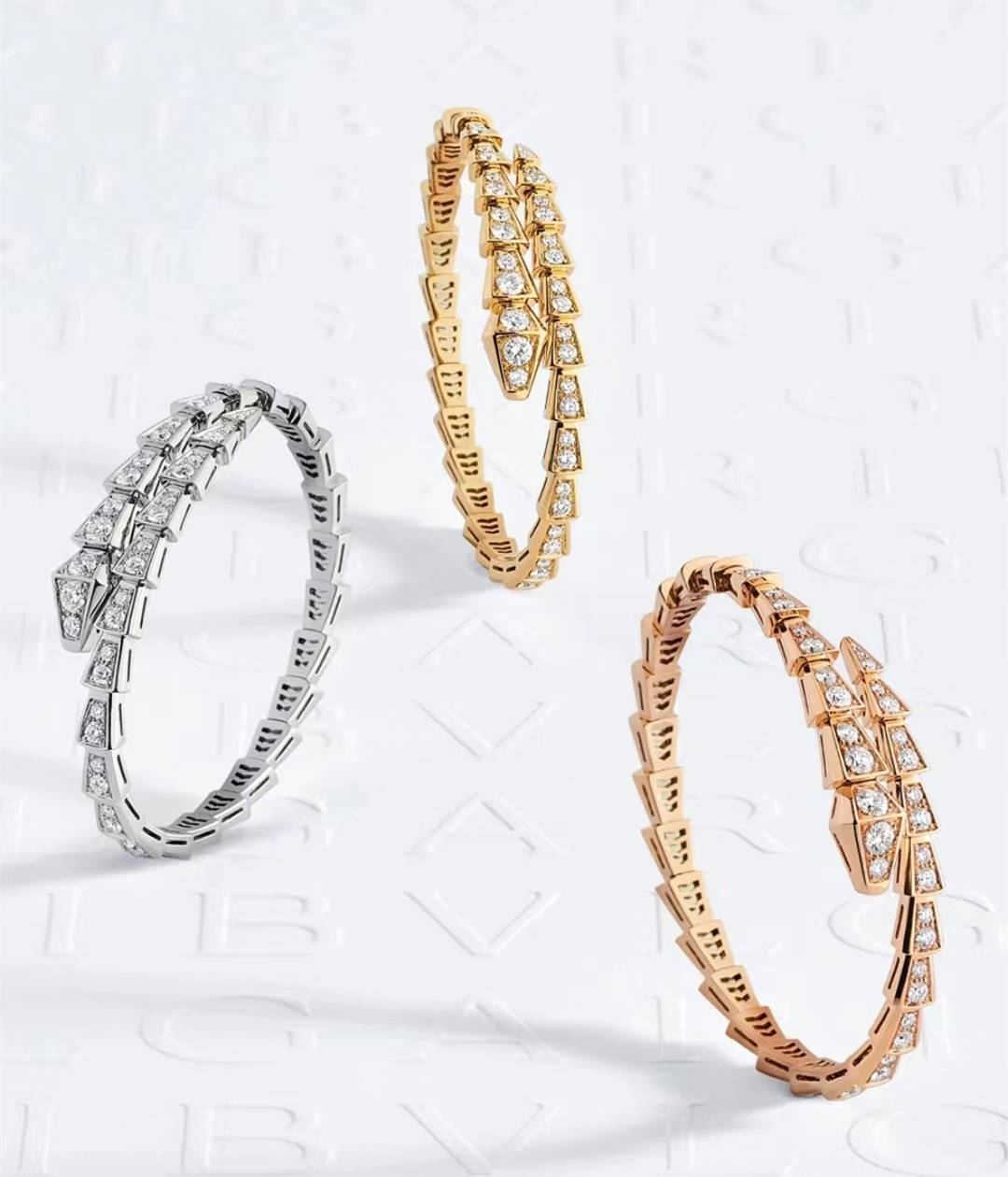 Bvlgari宝格丽Serpenti Viper系列18K金满镶钻石蛇形弹簧手镯