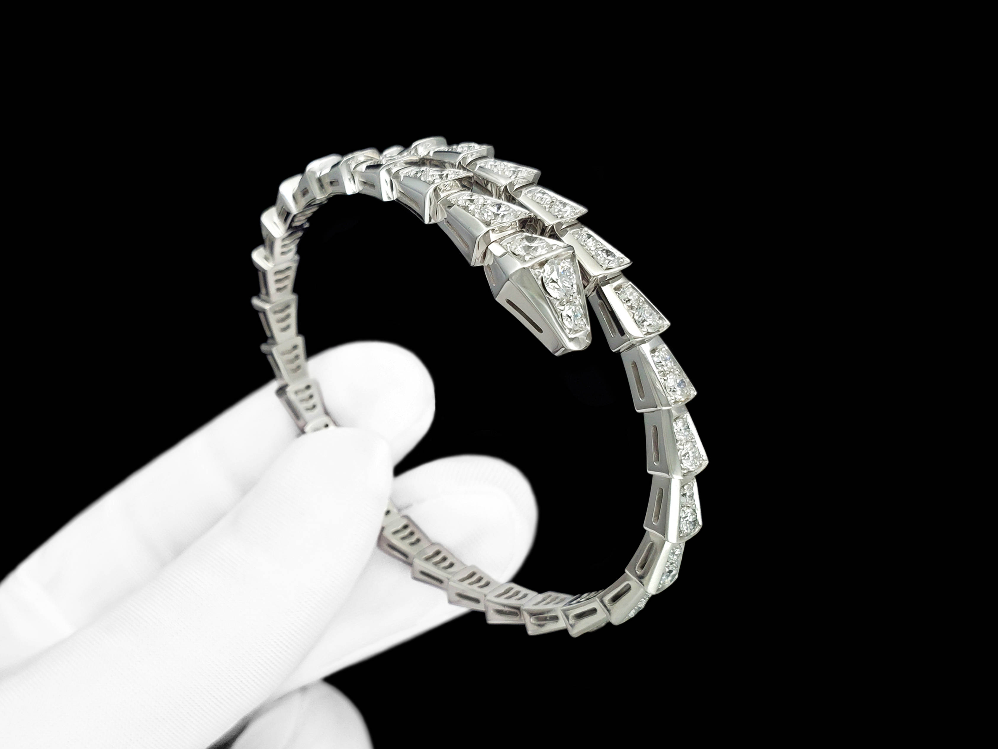 Bvlgari宝格丽Serpenti Viper系列18K白金满镶钻石蛇形弹簧手镯制作过程