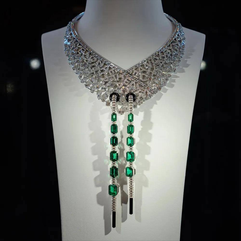这条香奈儿 Haute Joaillerie Sport 臻品珠宝系列 Sweater Prestige 项链设计灵感源自运动衫与运动装束的抽绳元素,以白 K 金、铂金打造,镶嵌钻石、祖母绿与缟玛瑙。