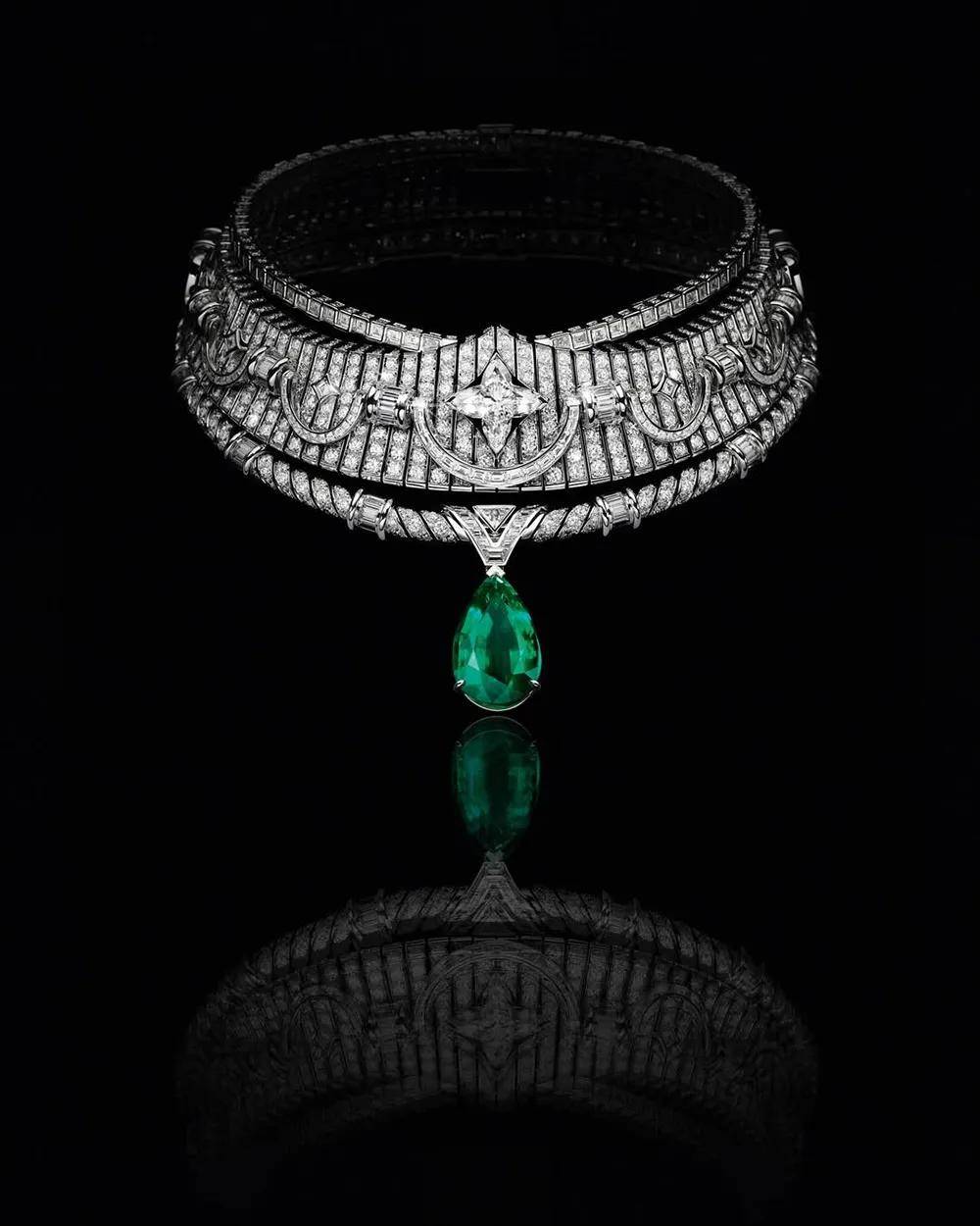 多排钻石项圈项链上,10.56克拉D级无瑕钻石以LV Monogram星形切割呈现,辨识度一目了然。