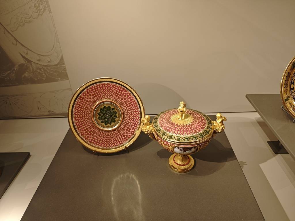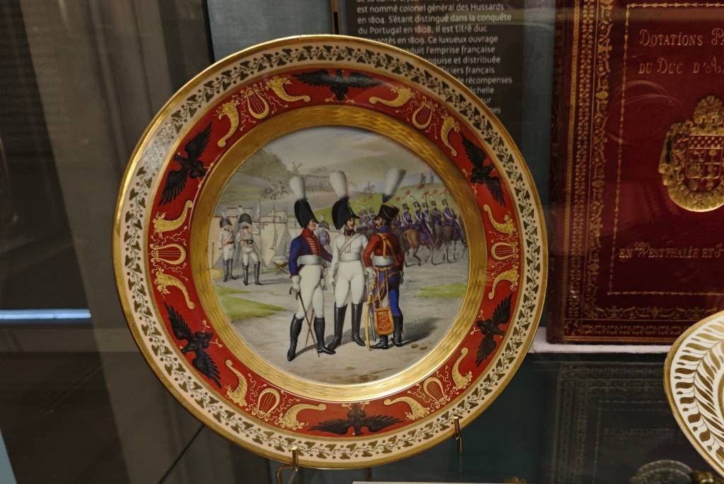 枫丹白露宫收藏的普鲁士王国1805年制造的皇家瓷器,盘中图案为普鲁士动员军队的情形,1806年拿破仑攻入柏林 摄影:劳拉申