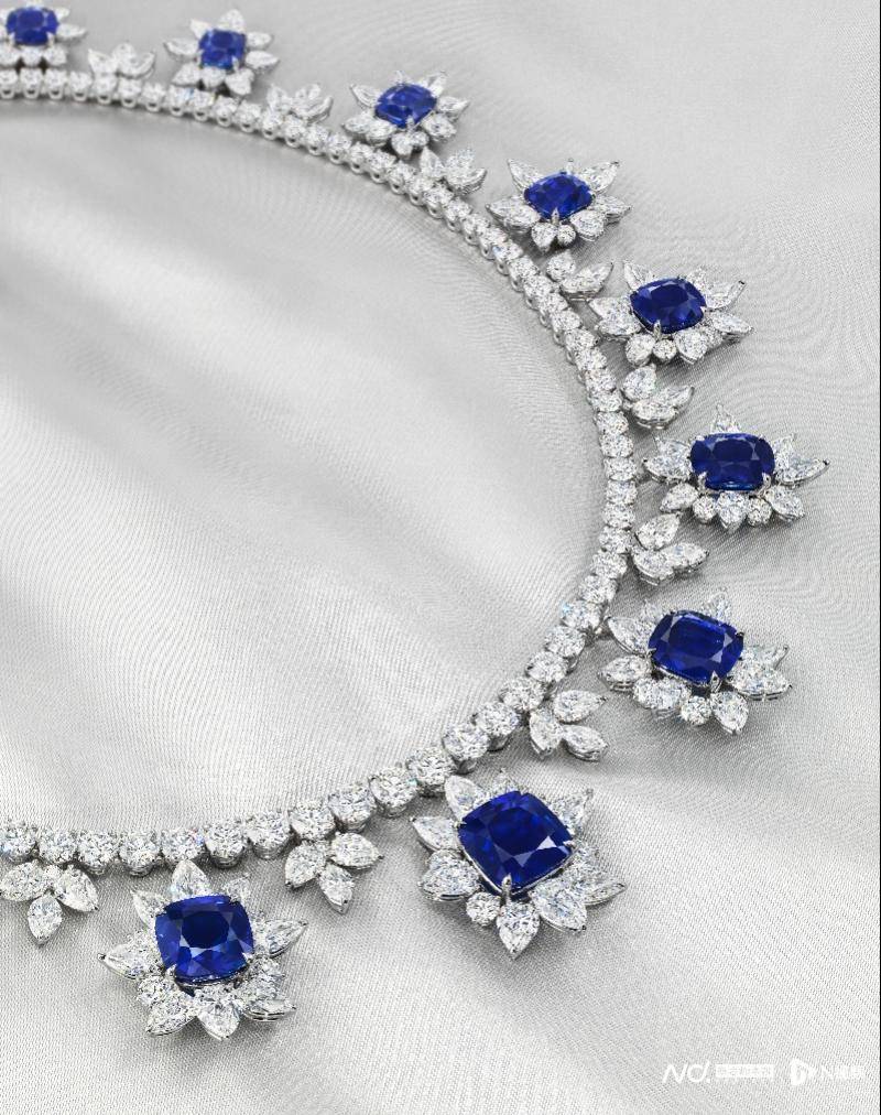 “The Royal Blue”16颗共重104.61克拉克什米尔天然皇家蓝蓝宝石及钻石项链