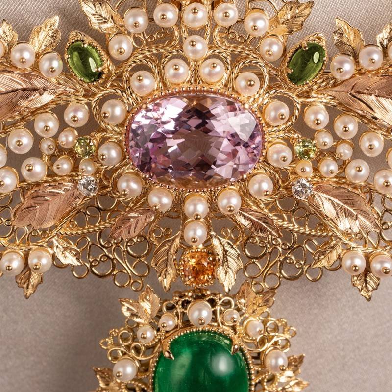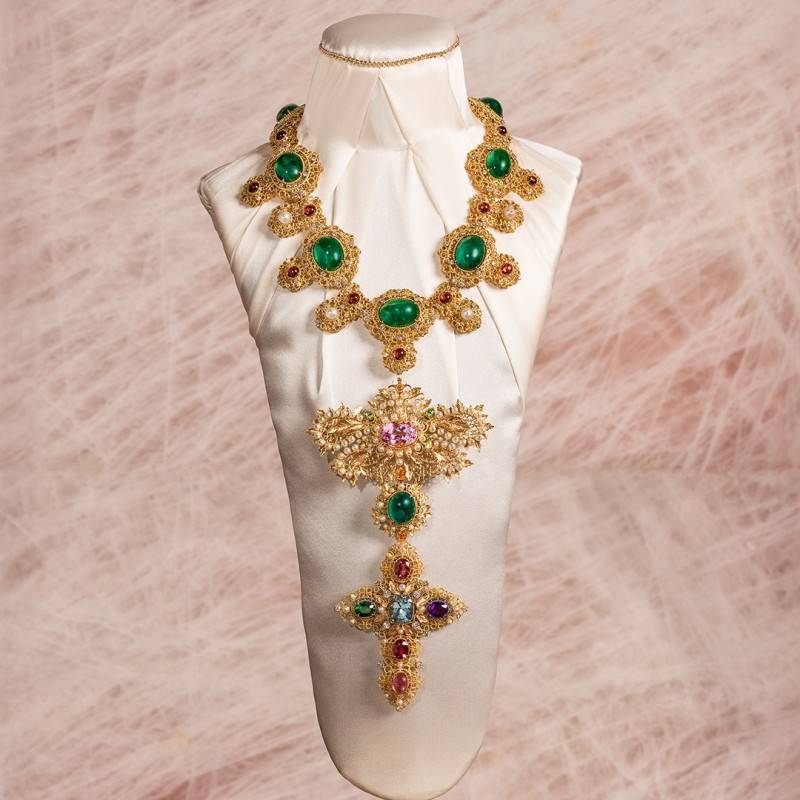 摩纳哥高级珠宝大奖赛汇聚了全球珠bv1946伟德国际始于英国宝界的翘楚,旨在表彰高级珠宝的卓越品质、稀缺属性与精湛工艺。杜嘉班纳高级珠宝凭借其2024撒丁岛系列中的一款十字架吊坠项链,赢得了公众的青睐。这款项链以黄K金、白K金与粉K金打造,镶嵌着缤纷的宝石、璀璨的钻石以及温润的珍珠,充分展现了Dolce&Gabbana品牌对意大利文化遗产、艺术与美感的执着追求。这款作品是杜嘉班纳对意大利文化传承的又一次深刻诠释。