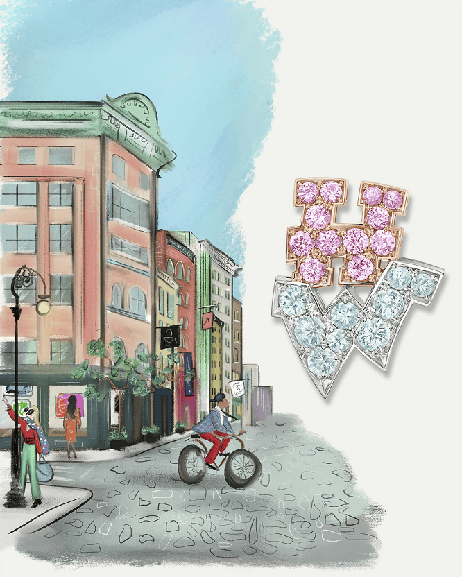 纽约苏荷区浓郁的艺术氛围,是Graffiti子系列的灵感溯源。系列甄选蓝色、粉色蓝宝石与海蓝宝石为主石,搭配璀璨钻石巧思组合,以珠宝为载体定格曼哈顿市中心的创意脉搏,让苏荷区的艺术底蕴与品牌的创新精神相映成辉。