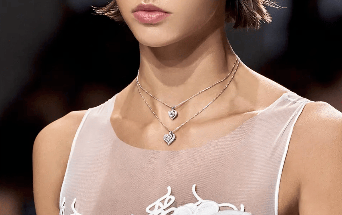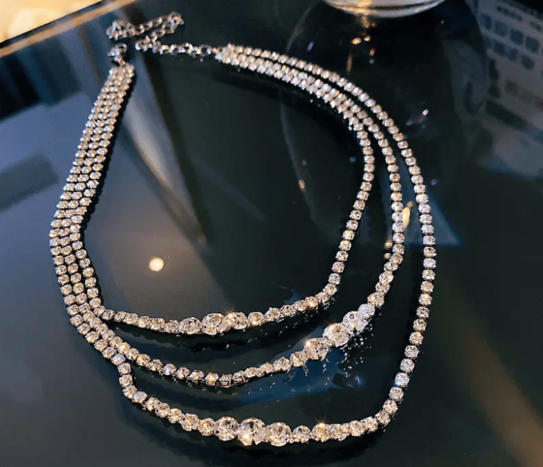 多层钻石项链是一种由多条链子组成的钻石项链款式,每一层链子上都镶嵌着钻石,形成丰富的视觉效果。这种项链常见于奢华的设计中,链条的长度和层次感使其在佩戴时非常抢眼。多层钻石项链适合搭配晚礼服或出席隆重的场合,能够展现佩戴者的尊贵与高雅。由于其复杂的设计,多层钻石项链通常具有较高的制作成本和售价。