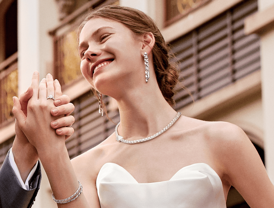 Y字形钻石项链因其独特的造型而受到时尚人士的青睐。项链的链条在胸前交叉下垂,形成一个“Y”字形,通常在下垂部分镶嵌一颗或几颗钻石。这种款式适合搭配低领或V领服装,能够拉长颈部线条,增添性感和优雅的气质。Y字形钻石项链既可以简约设计,也可以加入多颗钻石或其他宝石,增加设计的层次感。